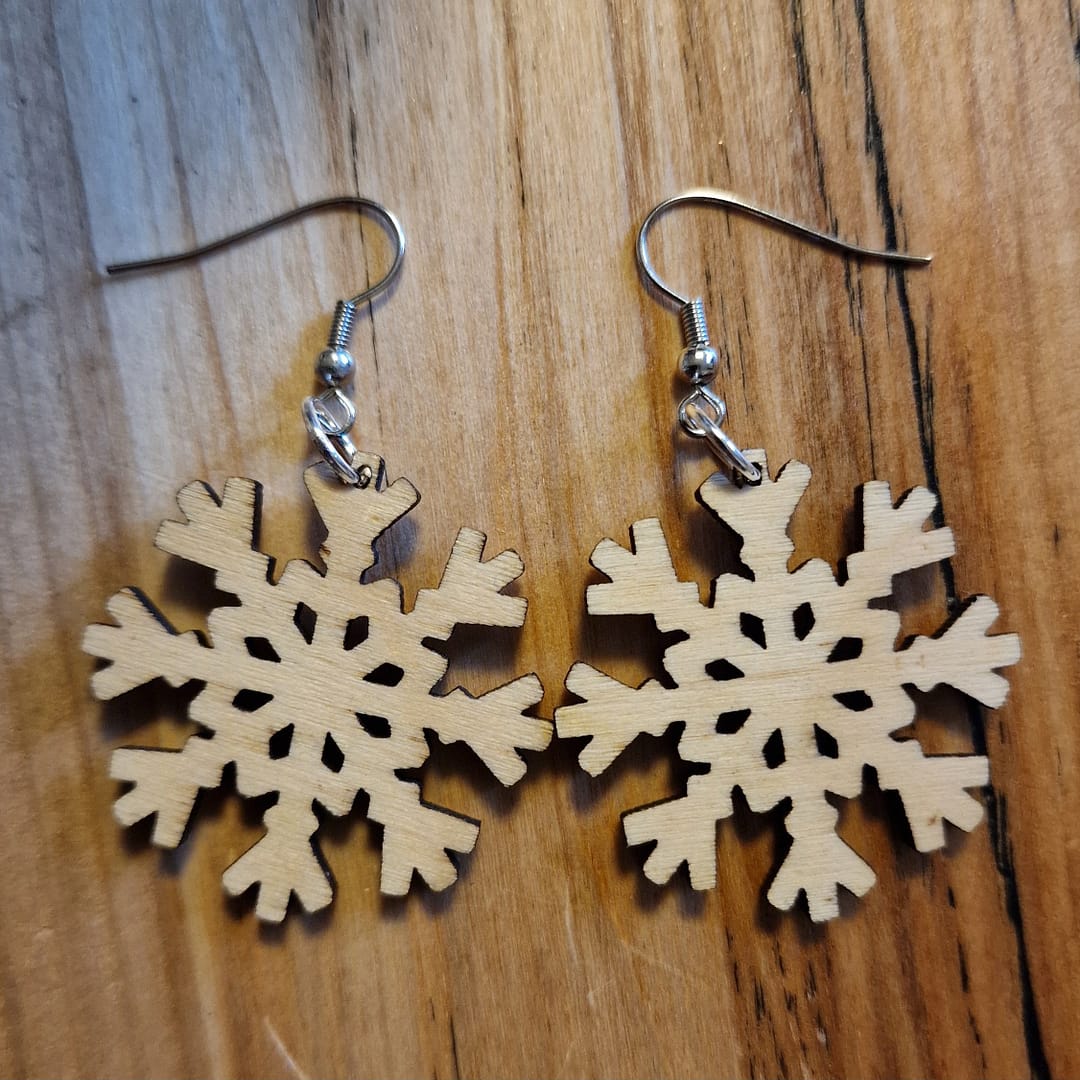Talvinen lumihiutale sopii esimerkiksi jääprinsessan juhla-asuun tai vaikka intohimoiselle talvilajien harrastajalle. Koru on valmistettu suomalaisesta koivuvanerista ja koukut ovat nikkelitöntä korumetallia.