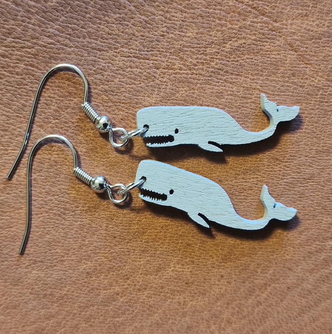 Laitapa valas roikkumaan korvaan! Yllättävän kevyt versio valaasta, mutta se onkin tehty suomalaisesta koivuvanerista.